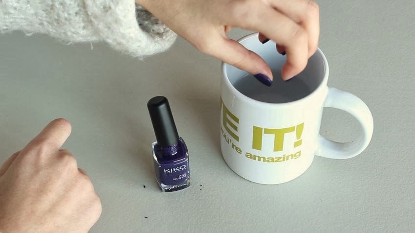Next,I painted a thick coat of my dark purple nail polish on all my nails, and put them near the steaming water.